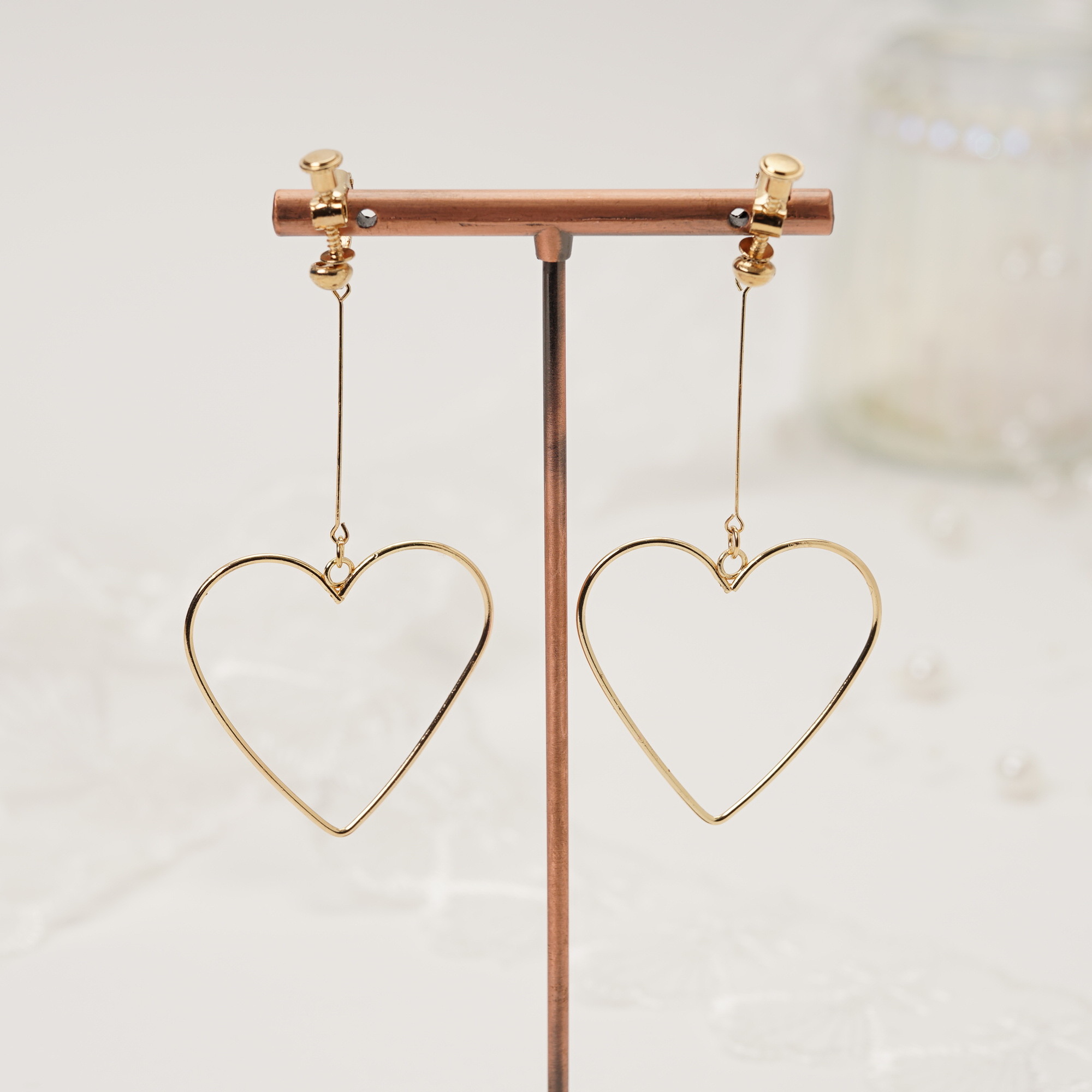 耳元で大きなハートがゆらゆらと揺れる可愛いデザインです。