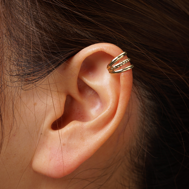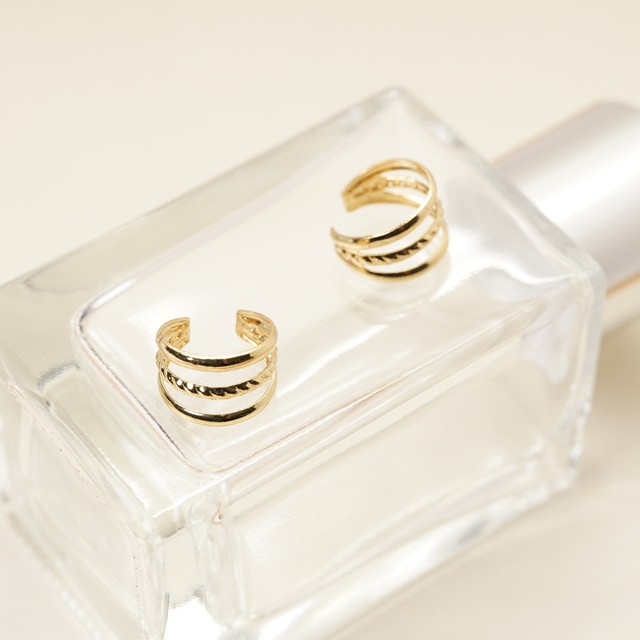 3重のイヤーカフ。左右非対称につけてピアスやイヤリングとの相性もばっちりです。