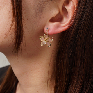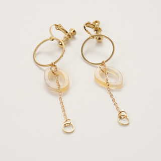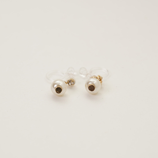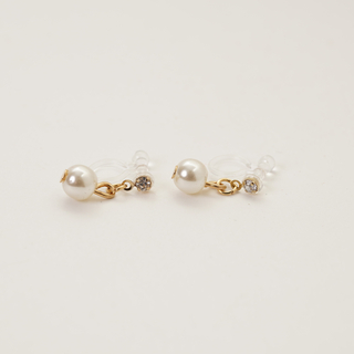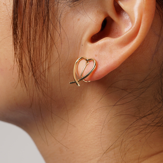 ピアスに見えるイヤリング ハートとバード(ホワイト)