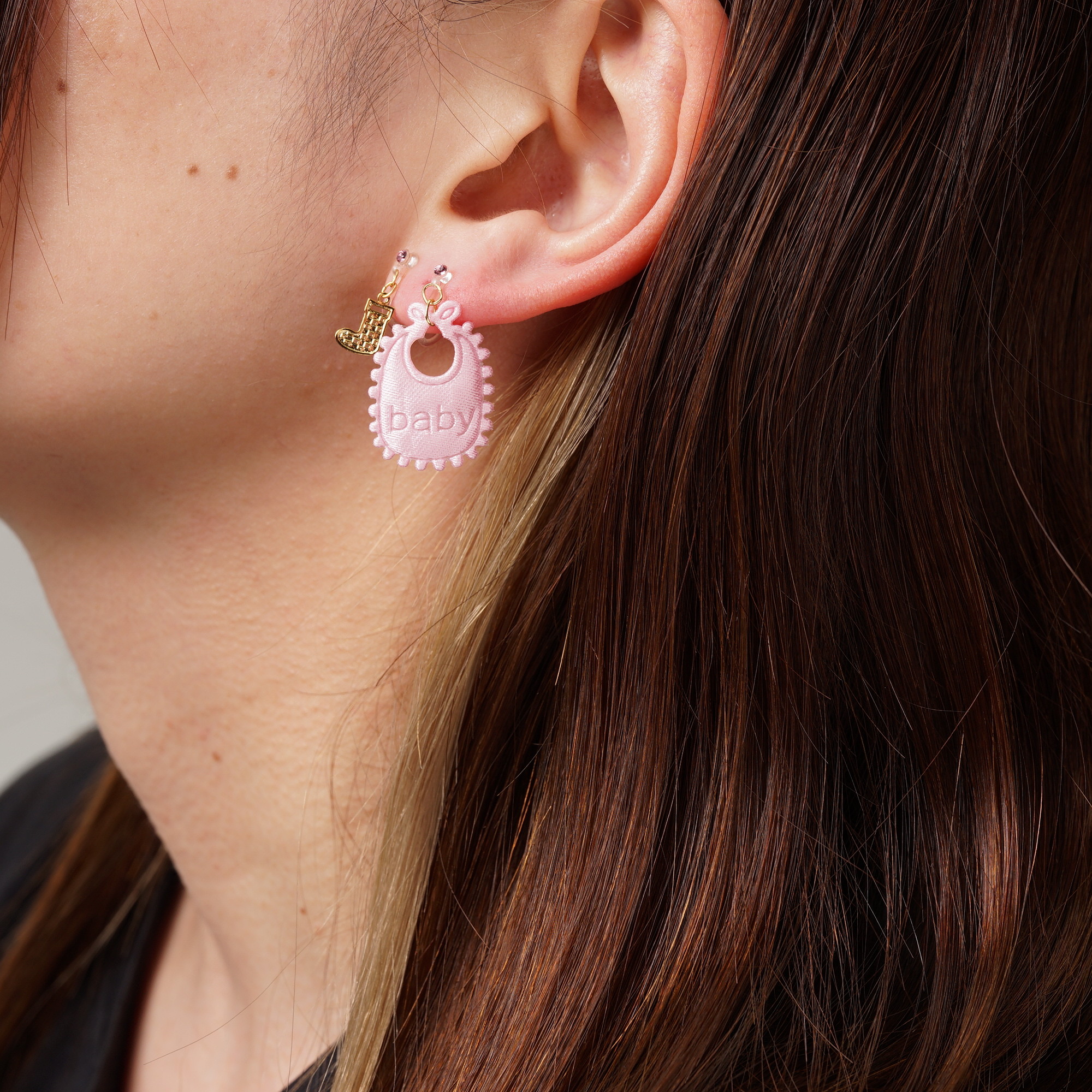 金属アレルギーの人も付けられる樹脂ノンホールピアスです。