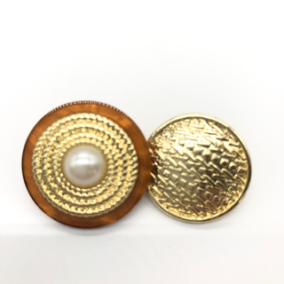 ちっちゃなブローチアンティーク調2P 丸ボタンパール