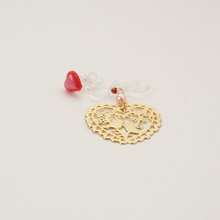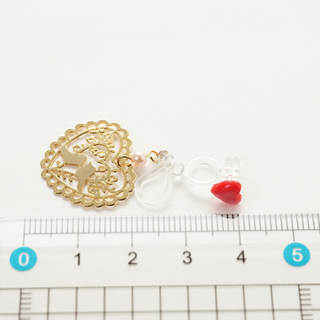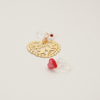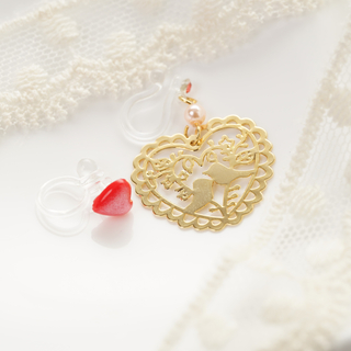 ピアスに見えるイヤリング ハートとバード(レッド)