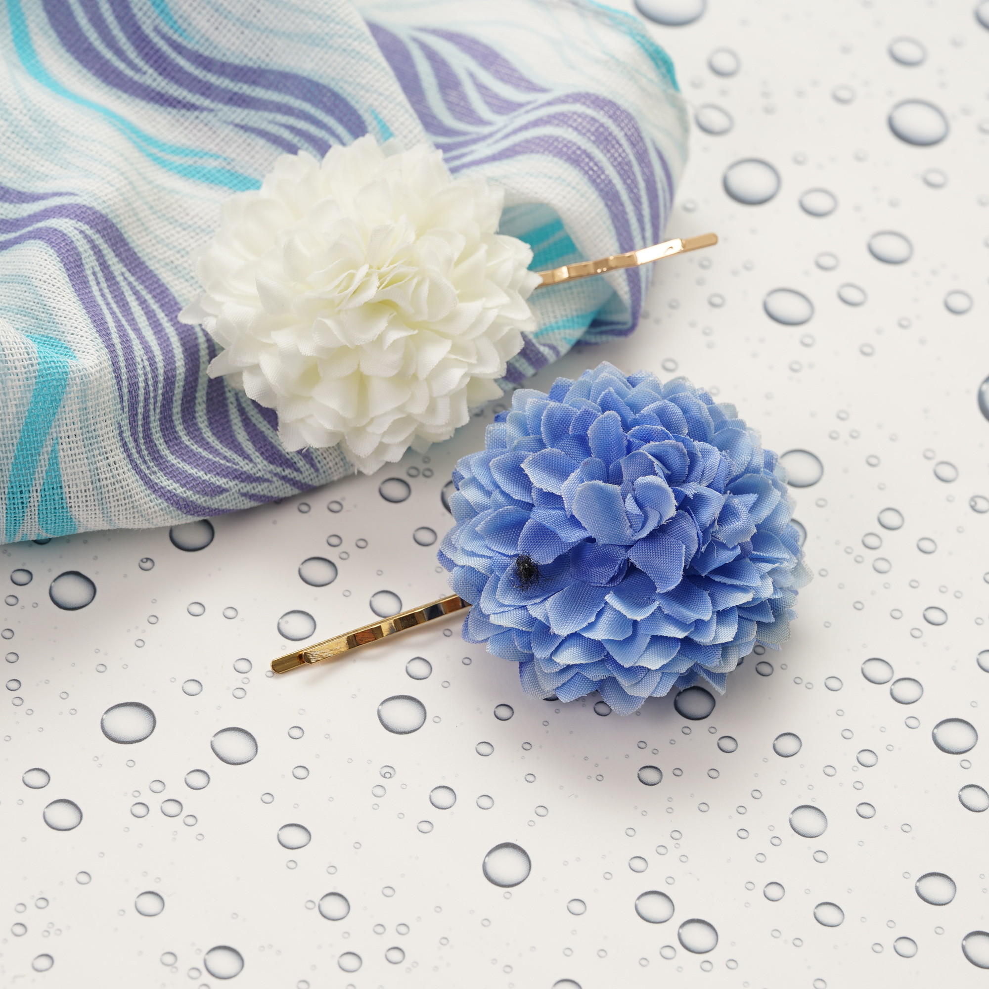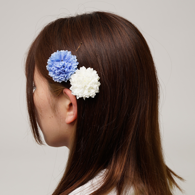 ボリューム感のある花の髪飾りでキュートさを演出!