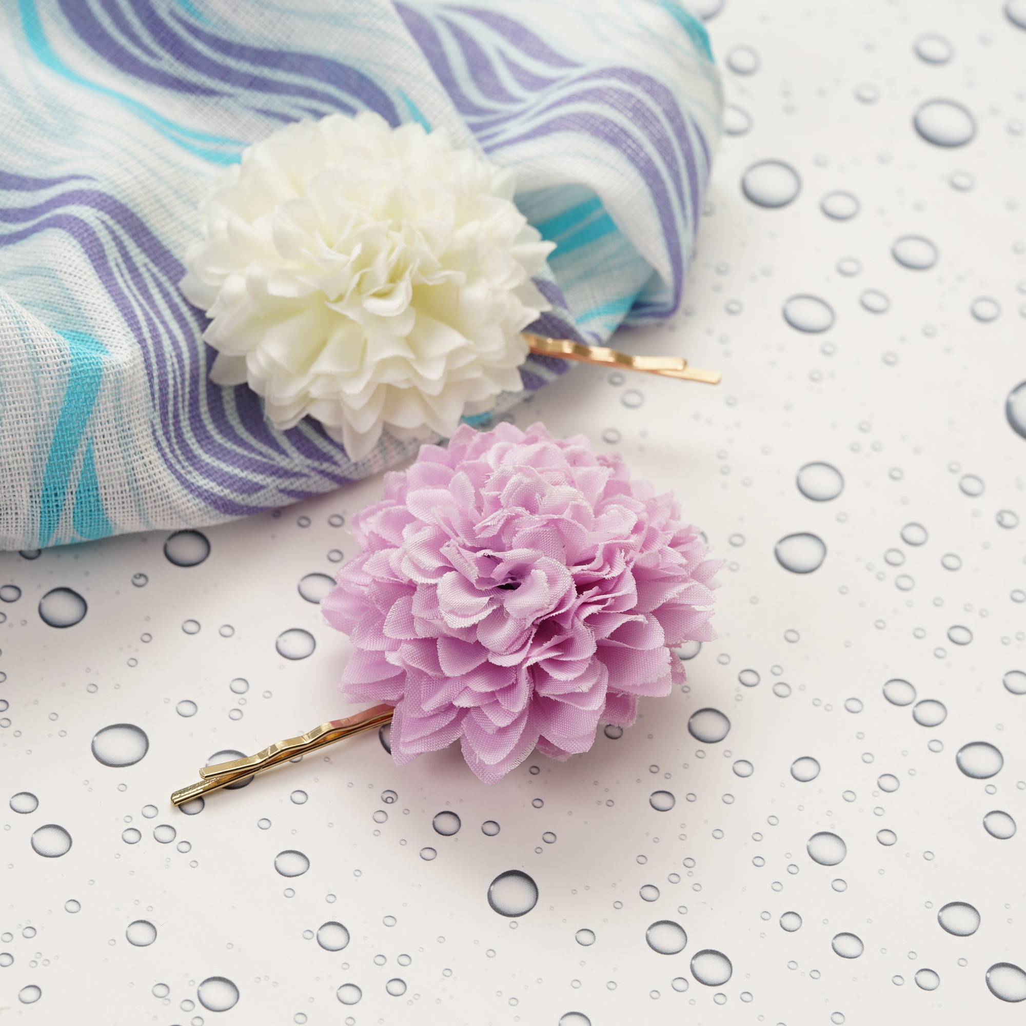 (紫&白)ヘアピンピンポンマム2P