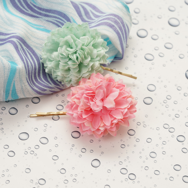ボリューム感のある花の髪飾りでキュートさを演出!