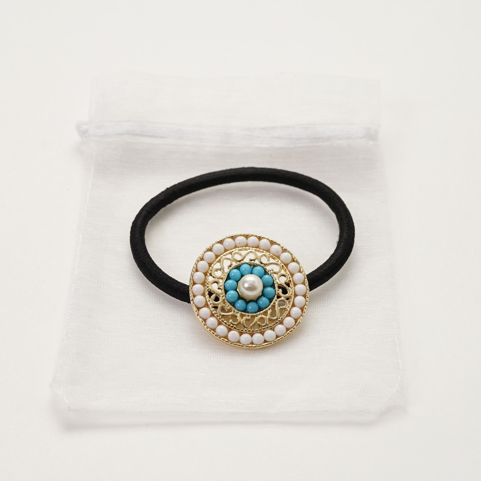 サークルガラス飾りのリングゴムです☆ドレッシーな装いにも。