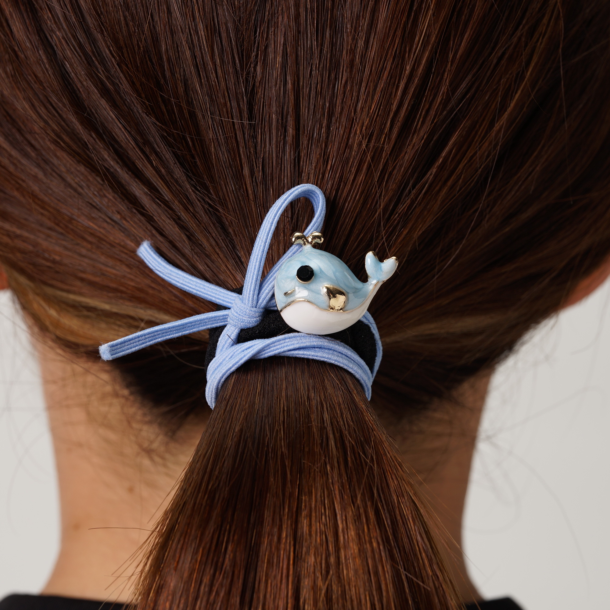 ガラス飾りのホエールパーツ付きリングゴム!夏にぴったりです。