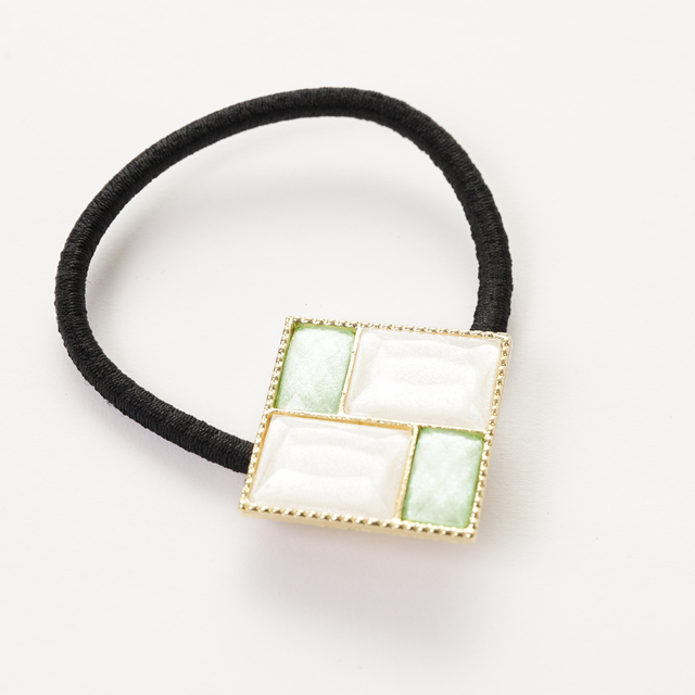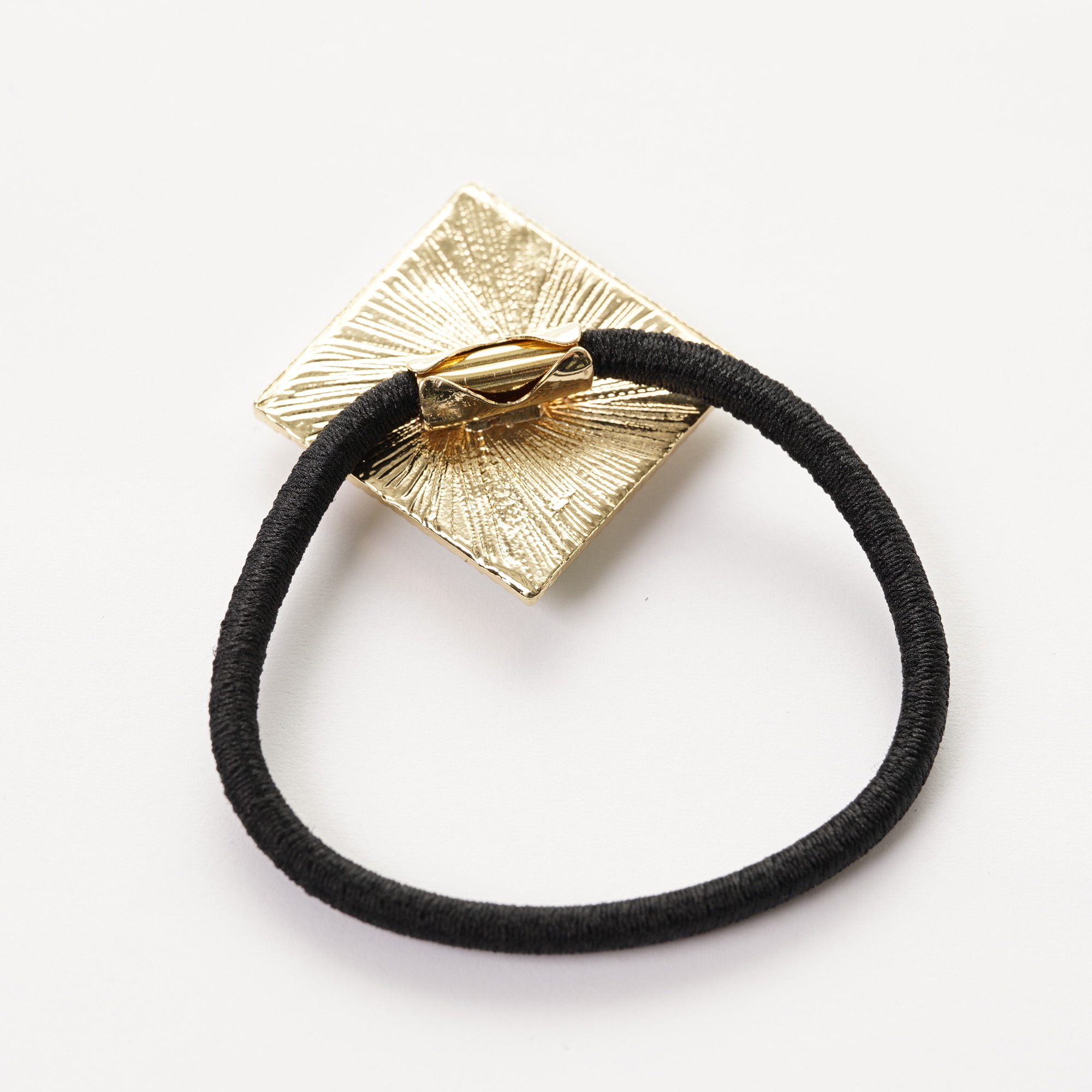 太目なゴムとスクエアパーツの組み合わせが大人を演出するヘアゴム。おしゃれな後ろ姿に仕上がります。 【オーガンジー袋入り】