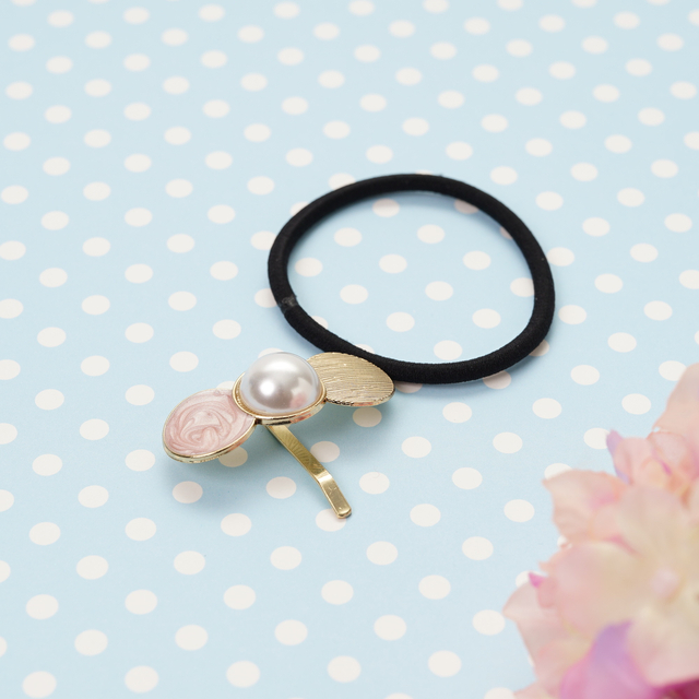 ヘアーゴムとヘアフックのセットです。太めのゴムでしっかり髪の毛をホールドし、お好きな向きでヘアフックをプラスでオシャレ度アップ!