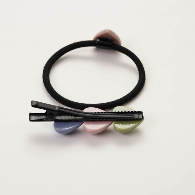 ハートパーツ付リングゴム 2P 桃色×青×緑×あずき色