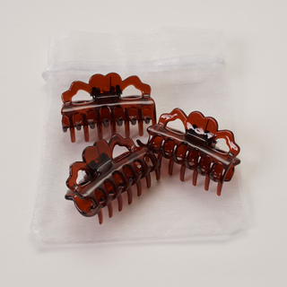 (ブラウン)ミニバンスクリップ3Pフラワー