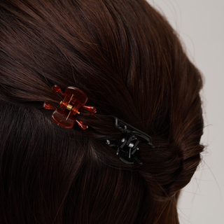 (ブラウン)ミニバンスクリップ3Pフラワー