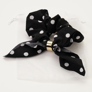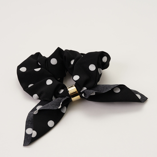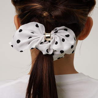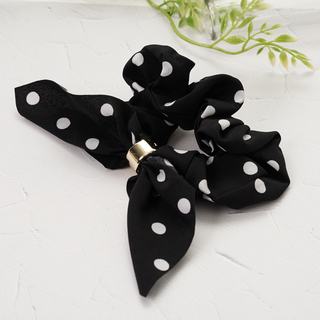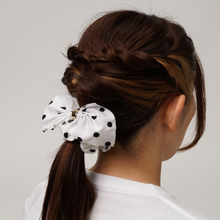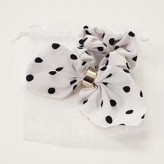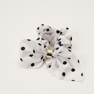 (ホワイト)シュシュドットリボンゴールドパーツ