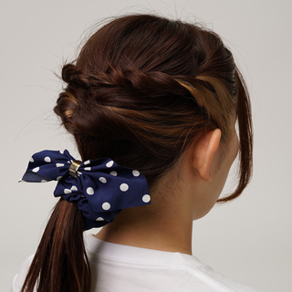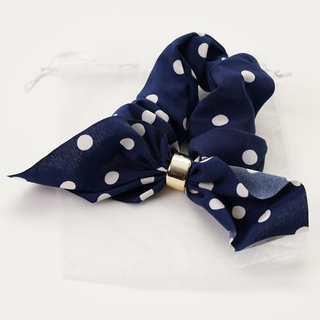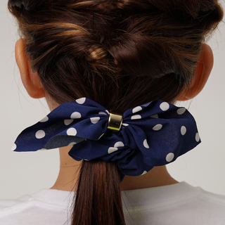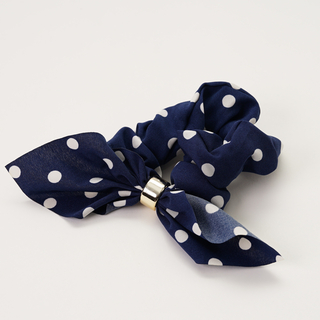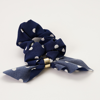 (ネイビー)シュシュドットリボンゴールドパーツ