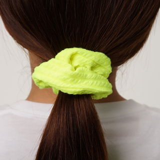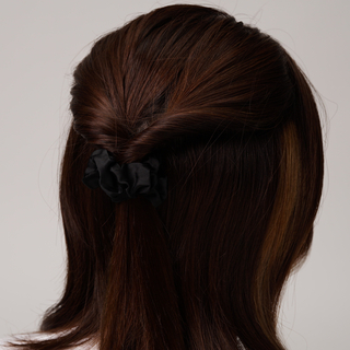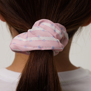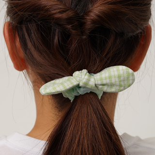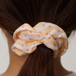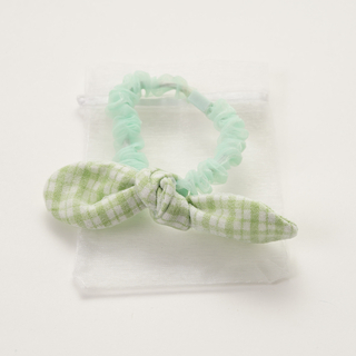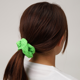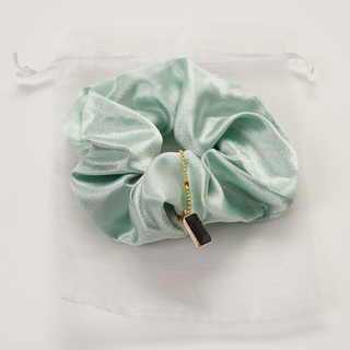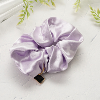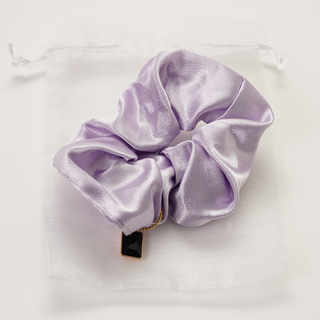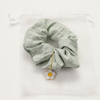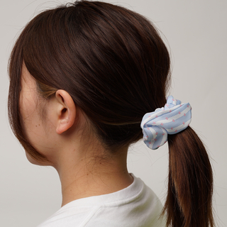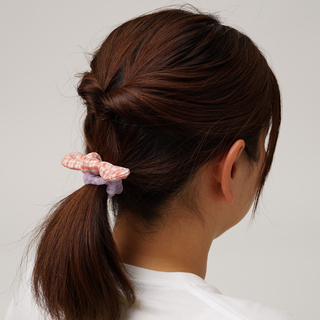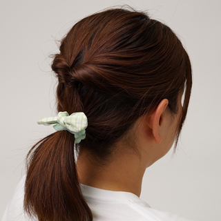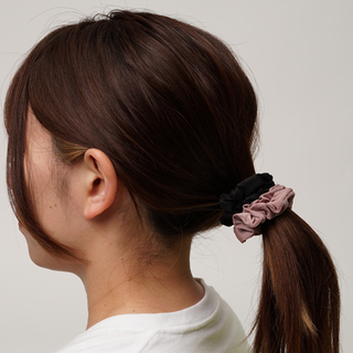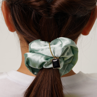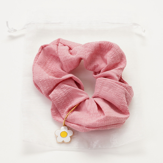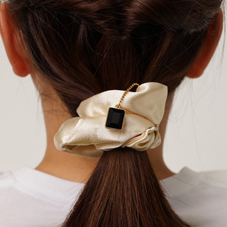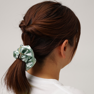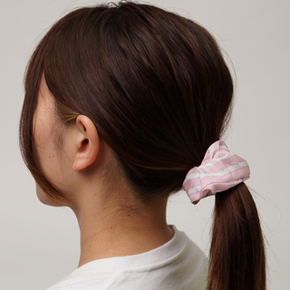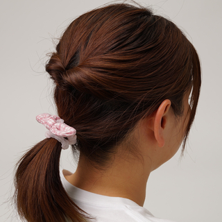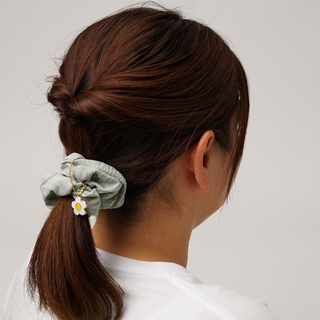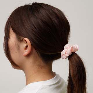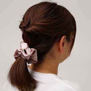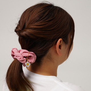パーツ付きシルクタイプのシュシュで束ねて可愛さアップ!