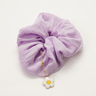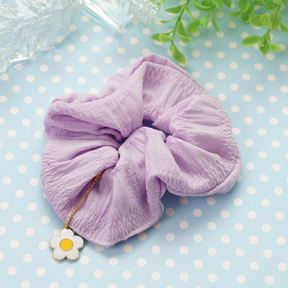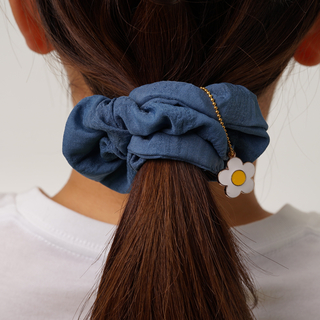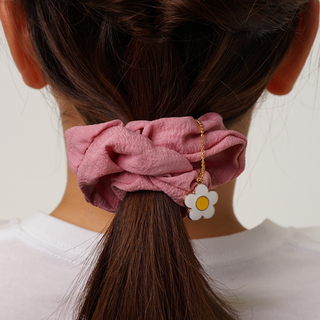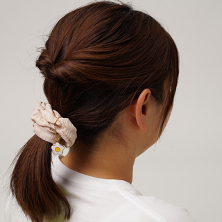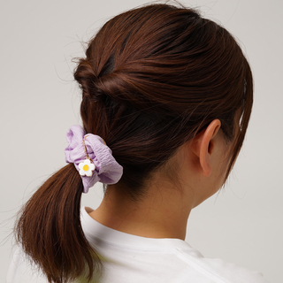 お花のパーツ付きシュシュで束ねて可愛さアップ!