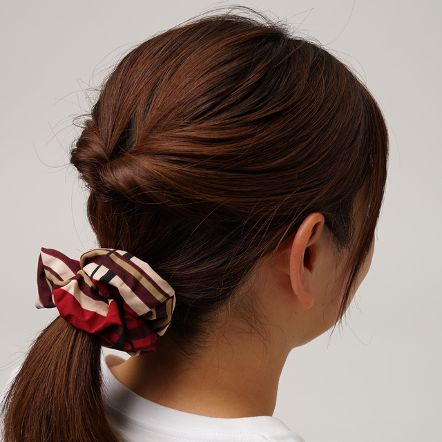 シンプルでも華やかさのあるシュシュ。カジュアルシーンで活躍すること間違いない!