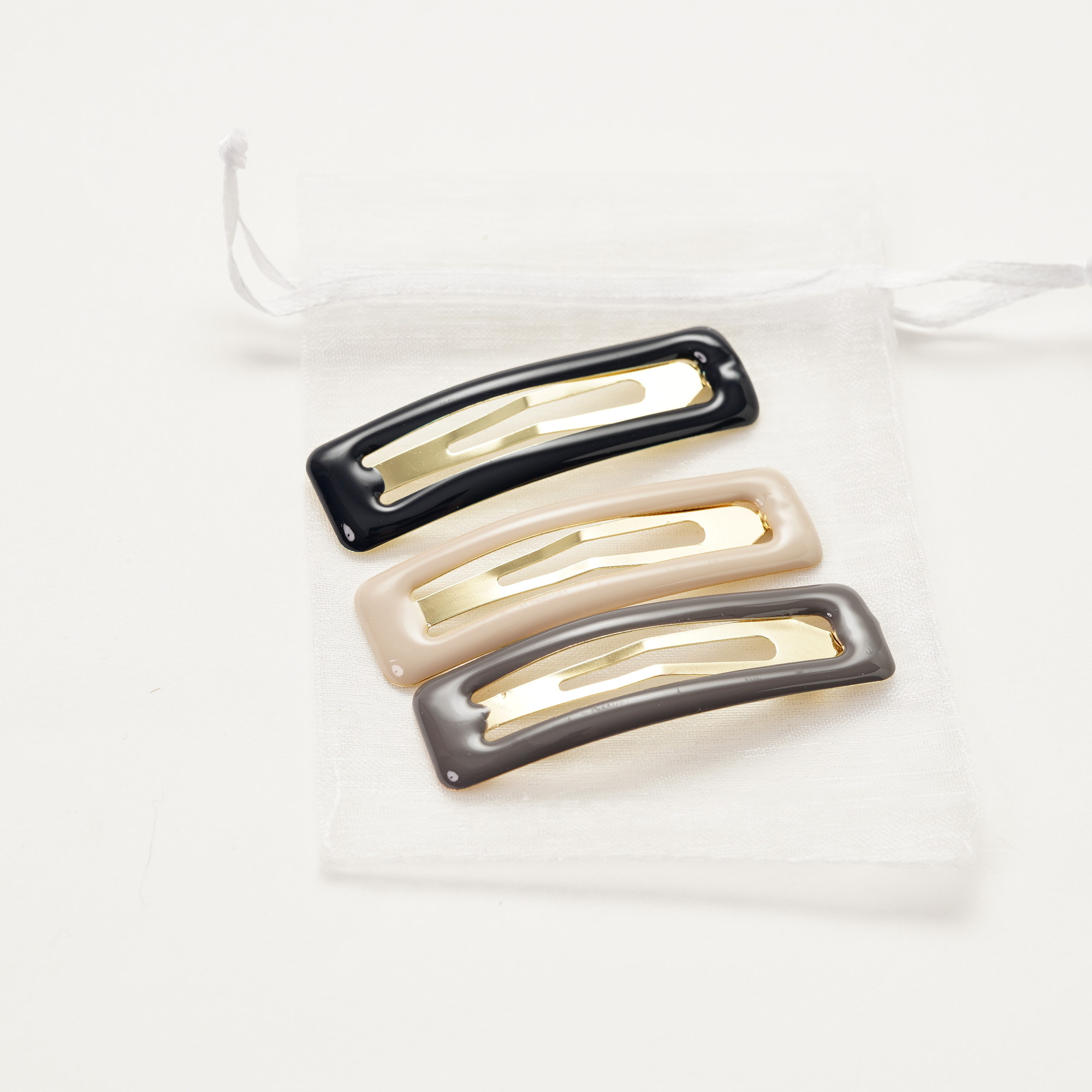 シンプルで使いやすいシックな色付きのパッチンヘアピン3つセットです。